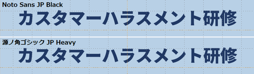ほとんどわかりませんが、字と字の間隔がちょっとだけ源ノ角ゴシック JP Heavyのほうが広かったです。